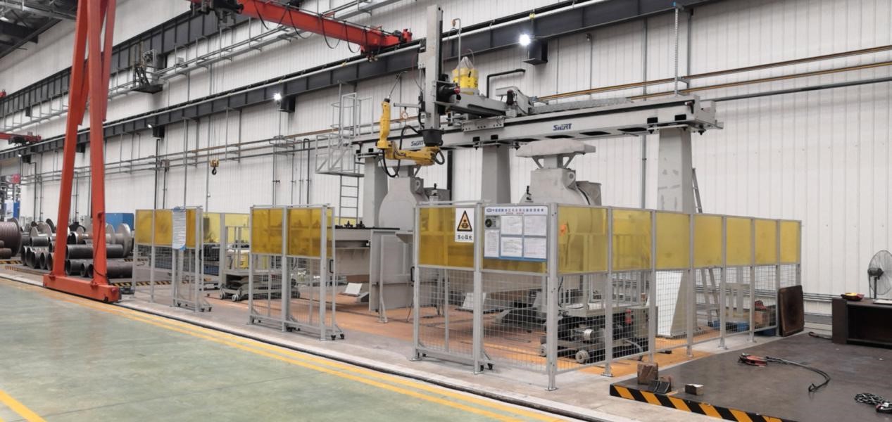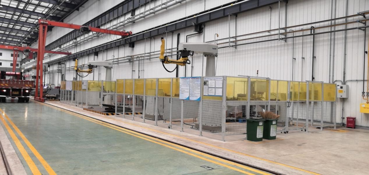 | 中船焊接項目 | 1、經(jīng)濟(jì)效益:只需2個操作人員看管8套設(shè)備,減少15個人工;采用設(shè)備焊接提高焊接質(zhì)量和降低生產(chǎn)節(jié)拍。 2、生產(chǎn)效率:卷筒20min/件,減速箱總成100min/件。 3、技術(shù)創(chuàng)新(運用到的工藝技術(shù)等) 點激光定位、高速焊接,離線編程軟件的應(yīng)用。 卷筒總成雙機(jī)器人自動焊接系統(tǒng) |
