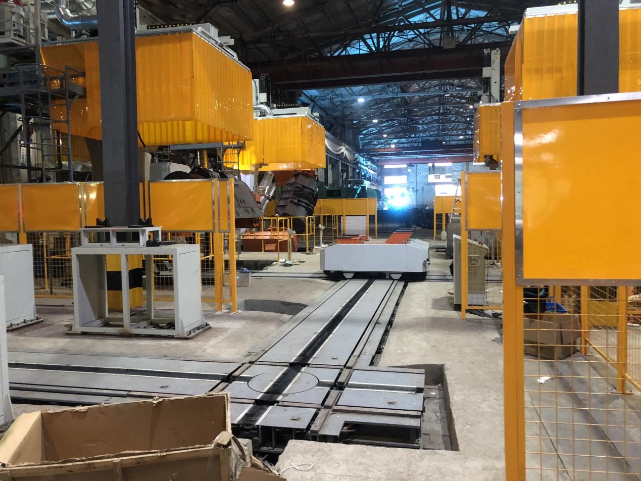 生產線包含有4套鏟斗機器人焊接工作站,一套一體式AGV物流小車,2套上料架,4套下料架,1套低壓直流軌道平板車。整線采用無人化設計,大大提高生產效率。