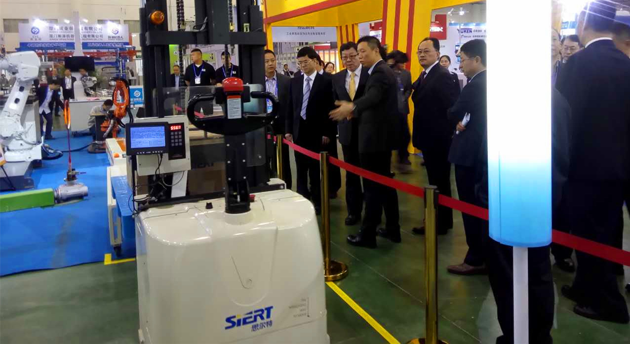 海峽兩岸關系協會會長陳德銘在廈門市市長裴金佳的陪同下蒞臨思爾特機器人廈門工業博覽會展位參觀指導