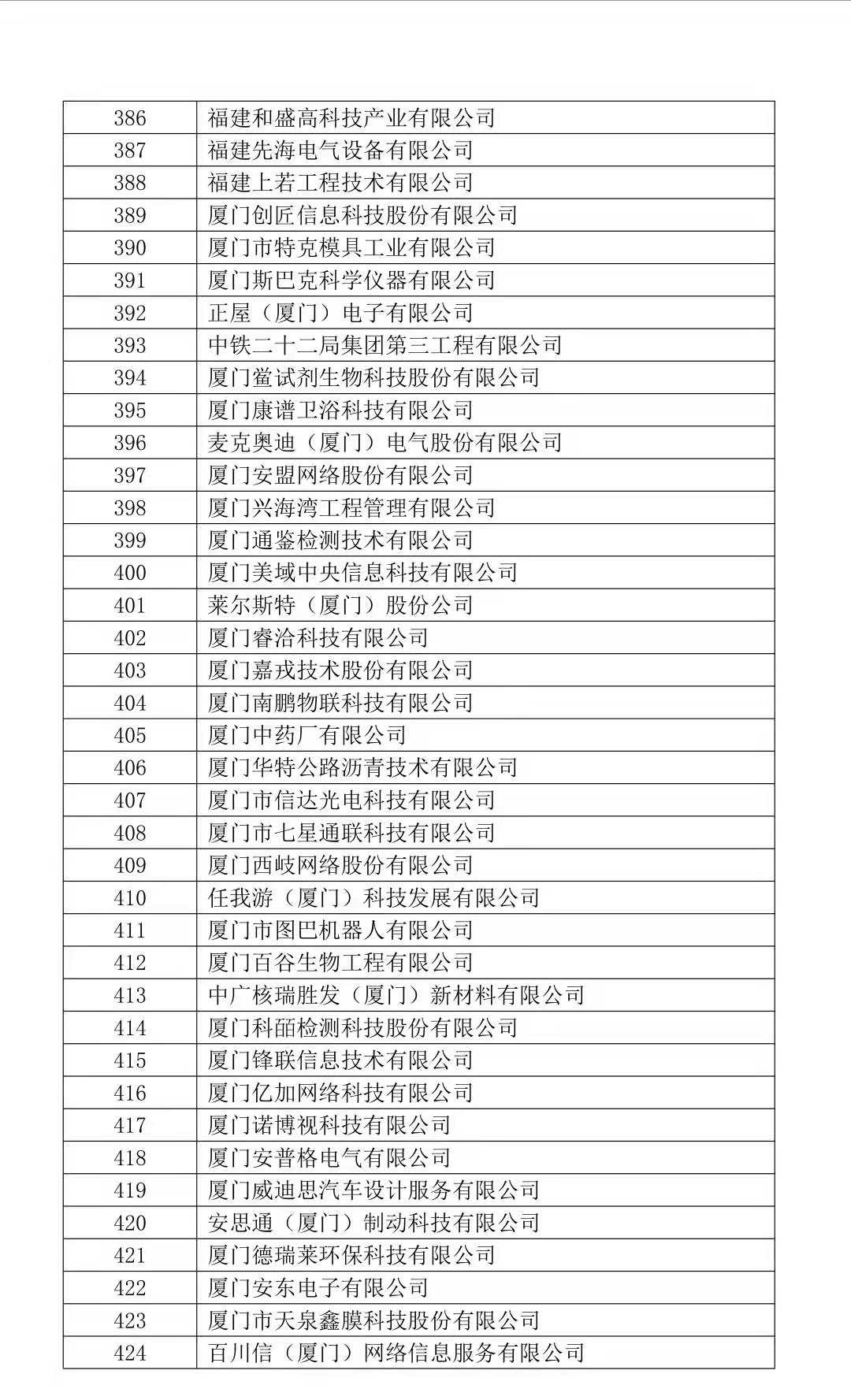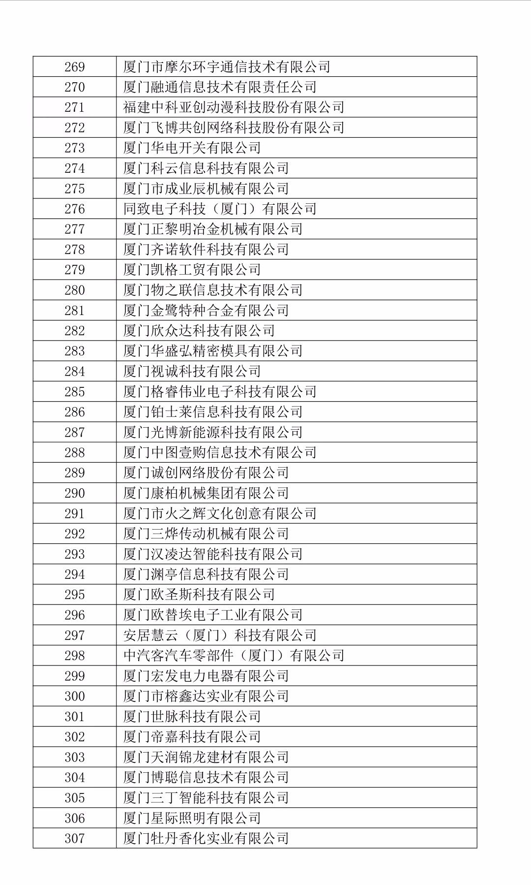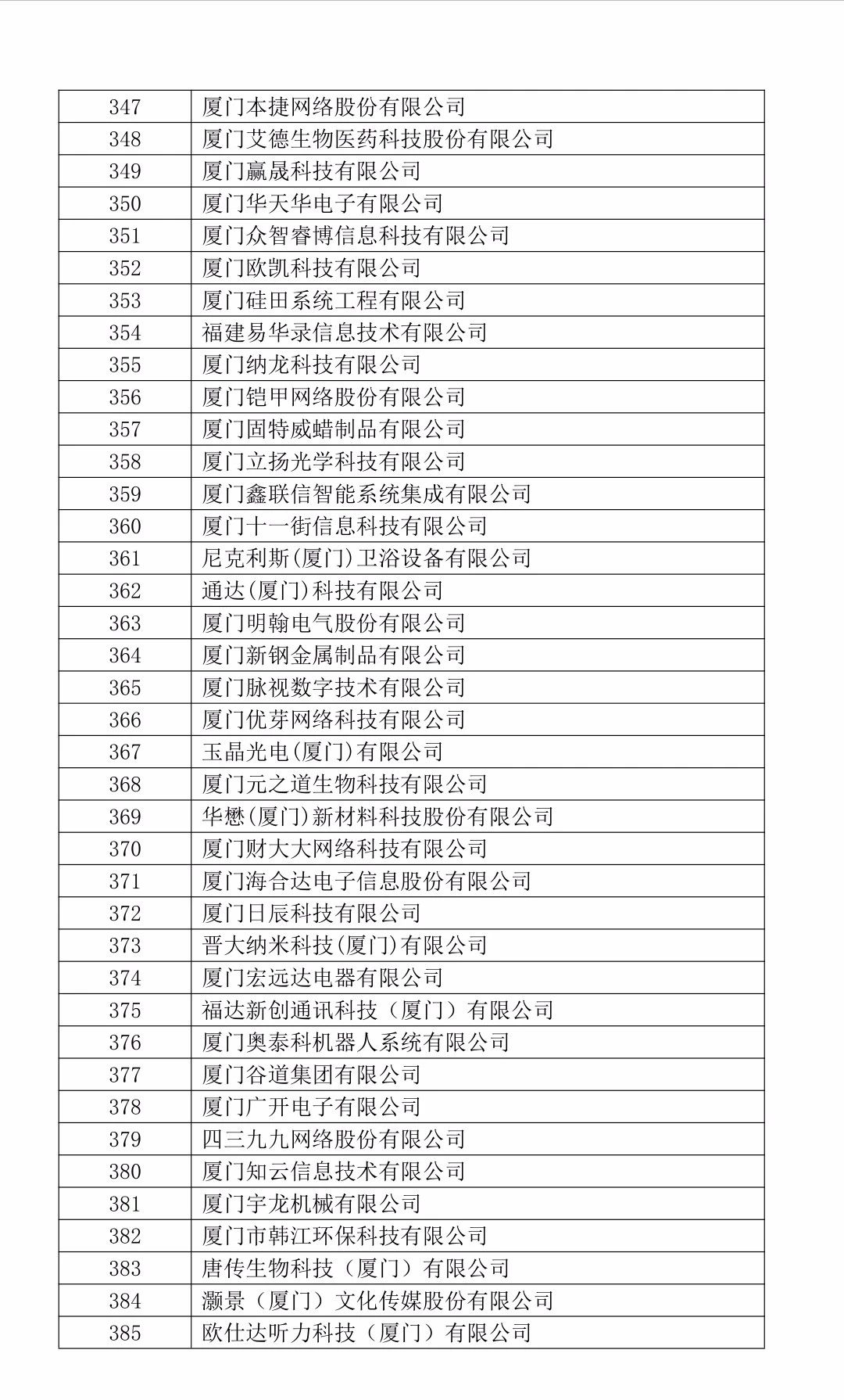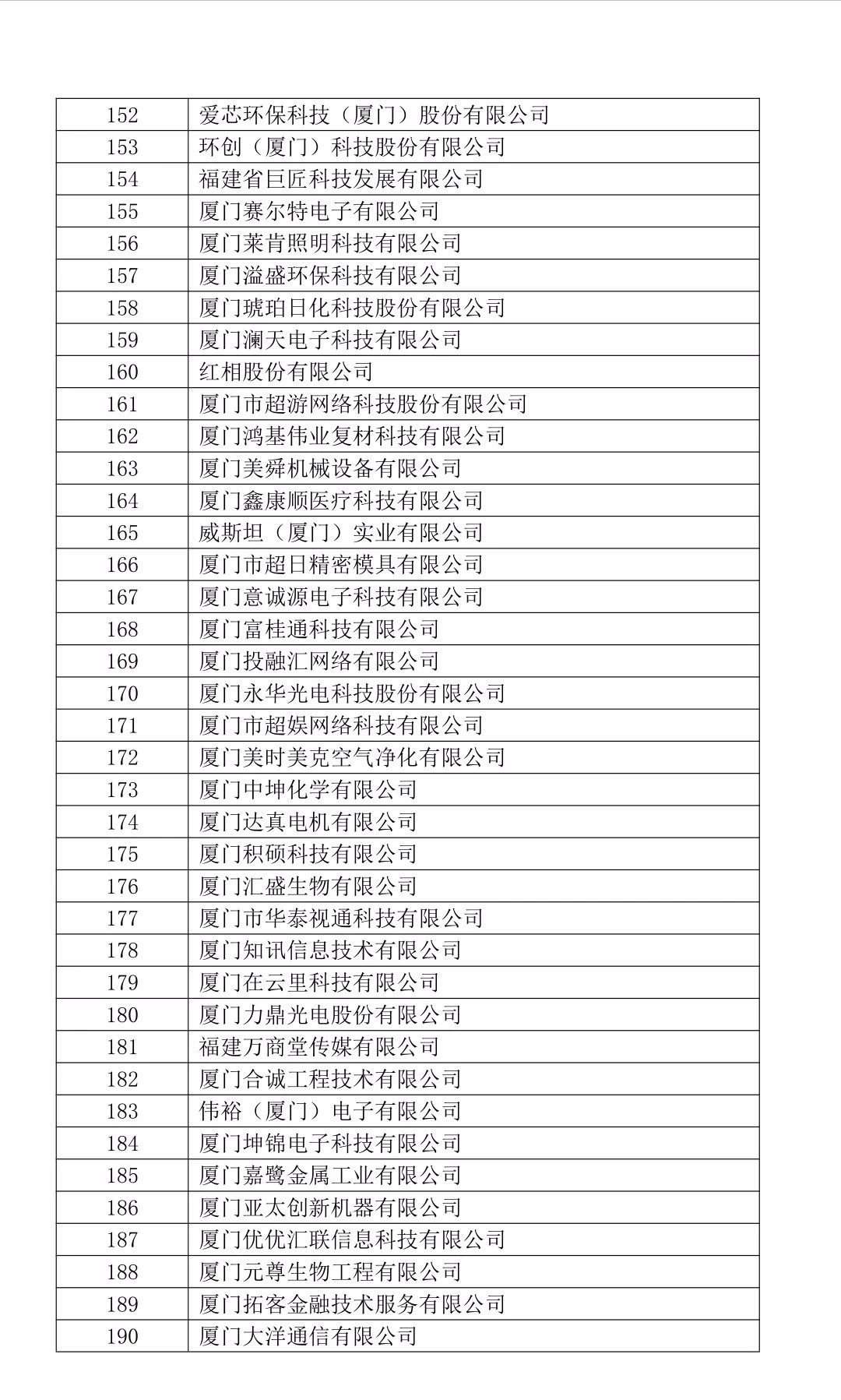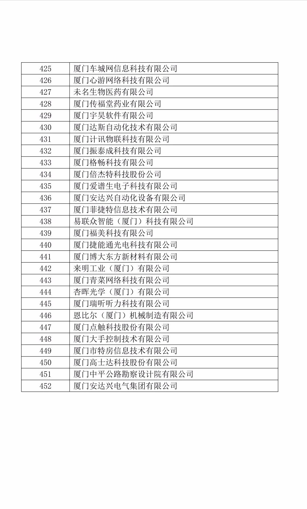 根據《高新技術企業認定管理辦法》(國科發火〔2016〕32號)和《高新技術企業認定管理工作指引》(國科發火〔2016〕195號)有關規定,現將廈門市2018年第一批452家企業擬認定高新技術企業名單(詳見附件)予以公示,公示期為10個工作日。