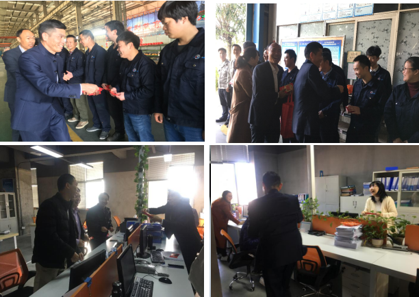 領(lǐng)導(dǎo)班子到各個(gè)工作崗位給員工送去節(jié)日的溫暖與問候,關(guān)切詢問大家的工作生活情況,勉勵(lì)大家發(fā)揚(yáng)成績(jī),開拓創(chuàng)新,以高昂的士氣和良好的精神面貌迎接新一年的工作,為開年工作開好頭,起好步。