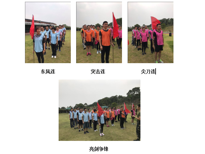 “開營組建團隊”將全部人員分成3組(東風連VS突擊連VS尖刀連),各組明確討論了團隊分工、隊名、隊呼、身著統一服裝,斗志昂揚地展現了我們團隊的風采。