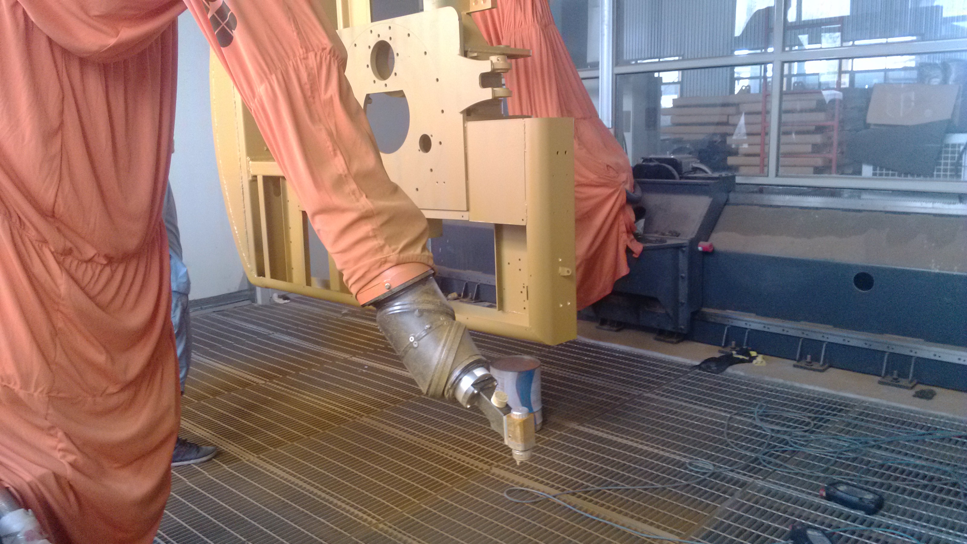 ? ? ?挖掘機部件噴涂機器人系統,顧名思義是用于工程機械部件外表面的底漆涂裝;機器人在輸送鏈兩側擺放,每臺機器人負責工件一側的噴涂, 2 臺機器人完成工件外表面的噴涂范圍的覆蓋。